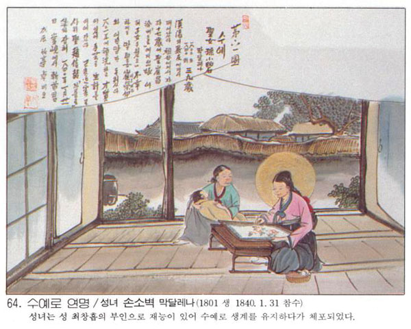 Çѱ¹ õÁÖ±³È¸ÀÇ 103¸íÀÇ ¼ºÀÎÁß ÇÑ»ç¶÷.¼­¿ïÀÇ ±³¿ì °¡Á¤¿¡¼­ ž ¼Õ¼Òº®Àº 1801³â ½ÅÀ¯¹ÚÇØ ¶§ ¾Æ¹öÁö°¡ ¼ø±³ÇÏ°í ¶Ç ¾î¸Ó´Ï¸¶Àú ÀÏÂï ¼¼»óÀ» ¶°³ª ¿ÜÇÒ¸Ó´Ï ¹Ø¿¡¼­ ÀÚ¶ú´Ù. 17¼¼ ¶§ ÃÖâÈí(õËóãýç)°ú È¥ÀÎÇÏ¿´À¸¸ç, 1821³â Àü±¹¿¡ ÄÝ·¹¶ó°¡ ÆÛÁöÀÚ ³²Æí°ú ÇÔ²² ´ë¼¼¸¦ ¹Þ°í ¼ºÃ¼¸¦ ¸ð½Ã°íºÎÅÍ´Â ½Å¾Ó »ýȰÀ» ¿­½ÉÈ÷ ÇÏ ...