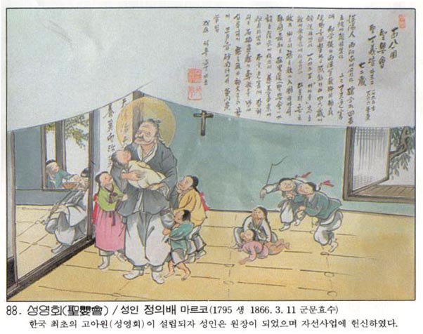 | Çѱ¹ õÁÖ±³È¸ÀÇ 103¸íÀÇ ¼ºÀÎÁß ÇÑ»ç¶÷.¼¿ï ⵿(óÚÔ×)¿¡¼ ÅÂ¾î³ Á¤Àǹè´Â À¯ÇÐ(êãùÊ)À» °øºÎÇÏ´Ù°¡ 1839³â ±âÇØ¹ÚÇØ ¶§ ¼¾ç ¼±±³»çÀÇ ¼ø±³ Àå¸éÀ» ¸ñ°ÝÇÏ°í °¨µ¿ÇÏ¿© °ð ±³¸®¸¦ ¹è¿ì°í ÀÔ±³ÇÏ¿´´Ù. 1845³â Á¦3´ë Á¶¼±±³±¸Àå °í ÁÖ±³°¡ ÀÔ±¹ÇÑ µÚ ¼¿ï Áö¿ªÀÇ È¸ÀåÀÌ µÇ¾î 20¿© ³â µ¿¾È Çå½ÅÀûÀ¸·Î ÀÏÇÏ¿´°í, 1854³â¿¡ ...