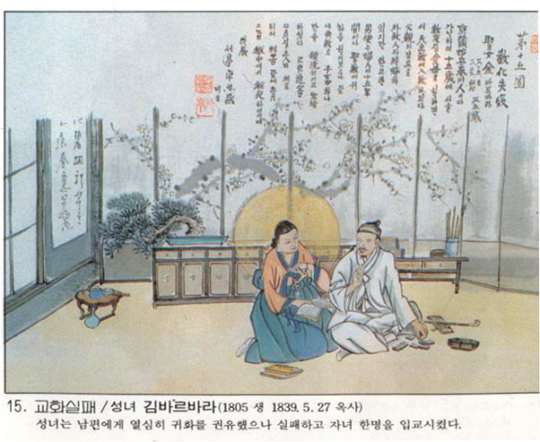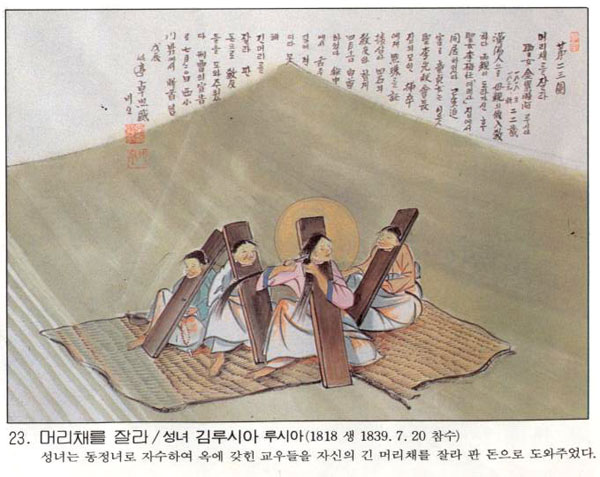 | Çѱ¹ õÁÖ±³È¸ÀÇ 103¸íÀÇ ¼ºÀÎÁß ÇÑ»ç¶÷.±è ·çÄ¡¾Æ´Â ¼¿ïÀÇ °¡³ÇÑ °¡Á¤¿¡¼ ž´Âµ¥ ž ¶§ºÎÅÍ ¸öÀÌ ºÒ±¸¿´´Ù. ±×·¡¼ ¡®²ÅÃß ·çÄ¡¾Æ¡¯·Î ºÒ·È´Ù. 1801³â ½ÅÀ¯¹ÚÇØ ÀÌÀüºÎÅÍ ÃµÁÖ±³¸¦ ¹Ï¾úÀ¸³ª ³²Æí°ú °¡Á·µéÀÌ ¸ðµÎ ¿Ü±³ÀÎÀ̶ó ½Å¾Ó »ýȰÀ» Á¦´ë·Î ÇÏÁö ¸øÇÏ¿´´Ù. °á±¹ ÁýÀ» ³ª¿Í ±³¿ìµéÀÇ Áý¿¡ ¾ñÇô »ì¸é¼ º´ÀÚ ...