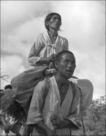 ÀÌ »çÁøÀº 1950³â 9¿ù °æ³² ±èÇØ¿¡¼ º´ÁßÀÇ ¾Æ³»¸¦ Áö°Ô¿¡ Áö°í ÇdzÀ» °¡´Â ÇÑ Áö¾ÆºñÀÇ ¸ð½ÀÀ» ´ã¾Ò´Ù. ºÎÀÎÀº ½Ã°¢Àå¾ÖÀÎÀÎ µí ÇÏ´Ù ³ª´Â ÀÌ »çÁøÀ» ã°í´Â ºÎºÎ¾ÖÀÇ ±ØÄ¡·Î ¸¶Ä¡ ¼ºÈ(á¡ûþ)¸¦ ´ëÇÑ µí, Çѵ¿¾È ´«À» ¶¿ ¼ö ¾ø¾ú´Ù.